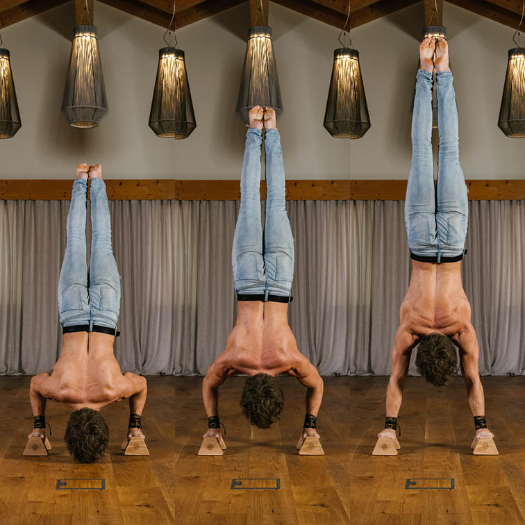 WoodPower PowerBars are easy-to-use tools for building upper body and grip strength with a neutral wrist position. These wooden parallettes create more space in any yoga or arm balance practice. Train longer with more leverage, extra support, and less pressure in your wrists. A lightly-oiled natural wood finish offers optimal grip for sweaty hands. Silicon pads ensure non-slip traction for stable balance on any even surface. Lightweight and sturdy, enjoy supported movement at home or on-the-go!